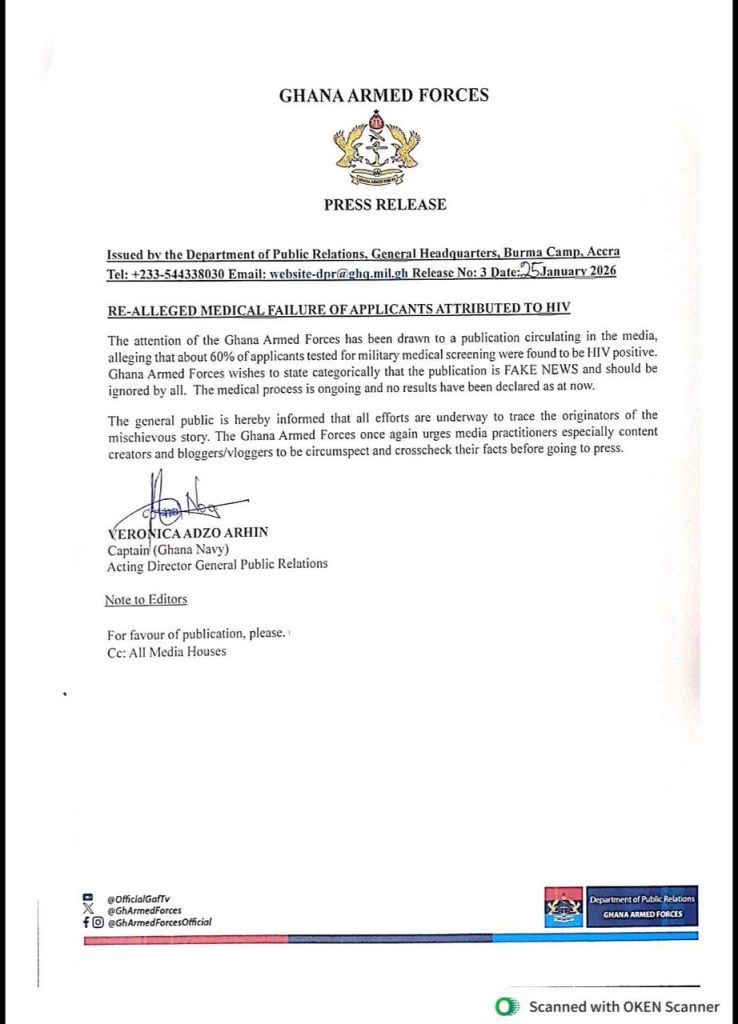 In a press release issued by the Acting Director General of Public Relations, Naval Captain Veronica Adzo Arhin, the GAF described the publication as “fake news” and urged the public to disregard it entirely.