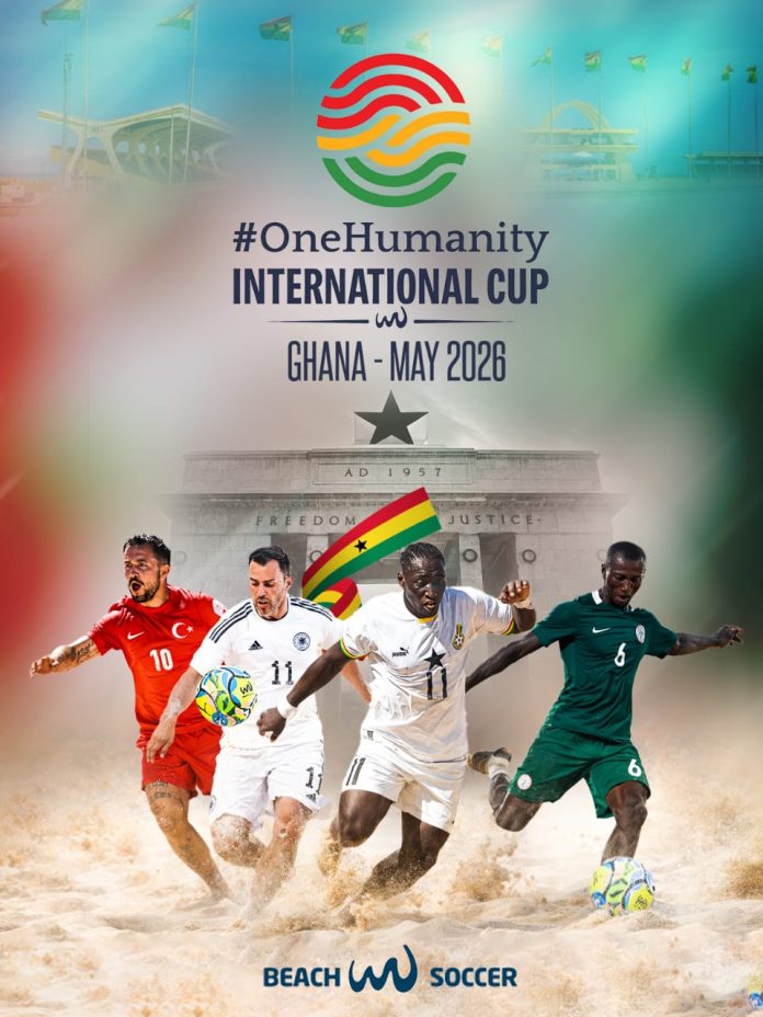 The “2026 One Humanity International Beach Soccer Festival” will be held in Accra from May 8 to 10, featuring national sides from host nation Ghana, Nigeria, England, and Germany. The tournament was formally launched in the capital last Friday.