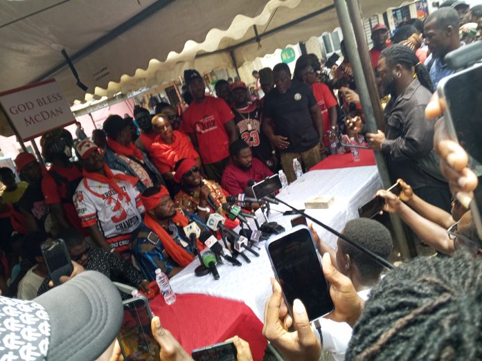 Brandishing placards—some praising McDan Group Chairman Dr. Daniel McKorley, others bearing vitriolic messages directed at the government—the protesters marched through the historic Ga community before converging on a press conference venue where the Coalition of GaDangme Pressure Groups delivered a strong-worded statement on the matter.