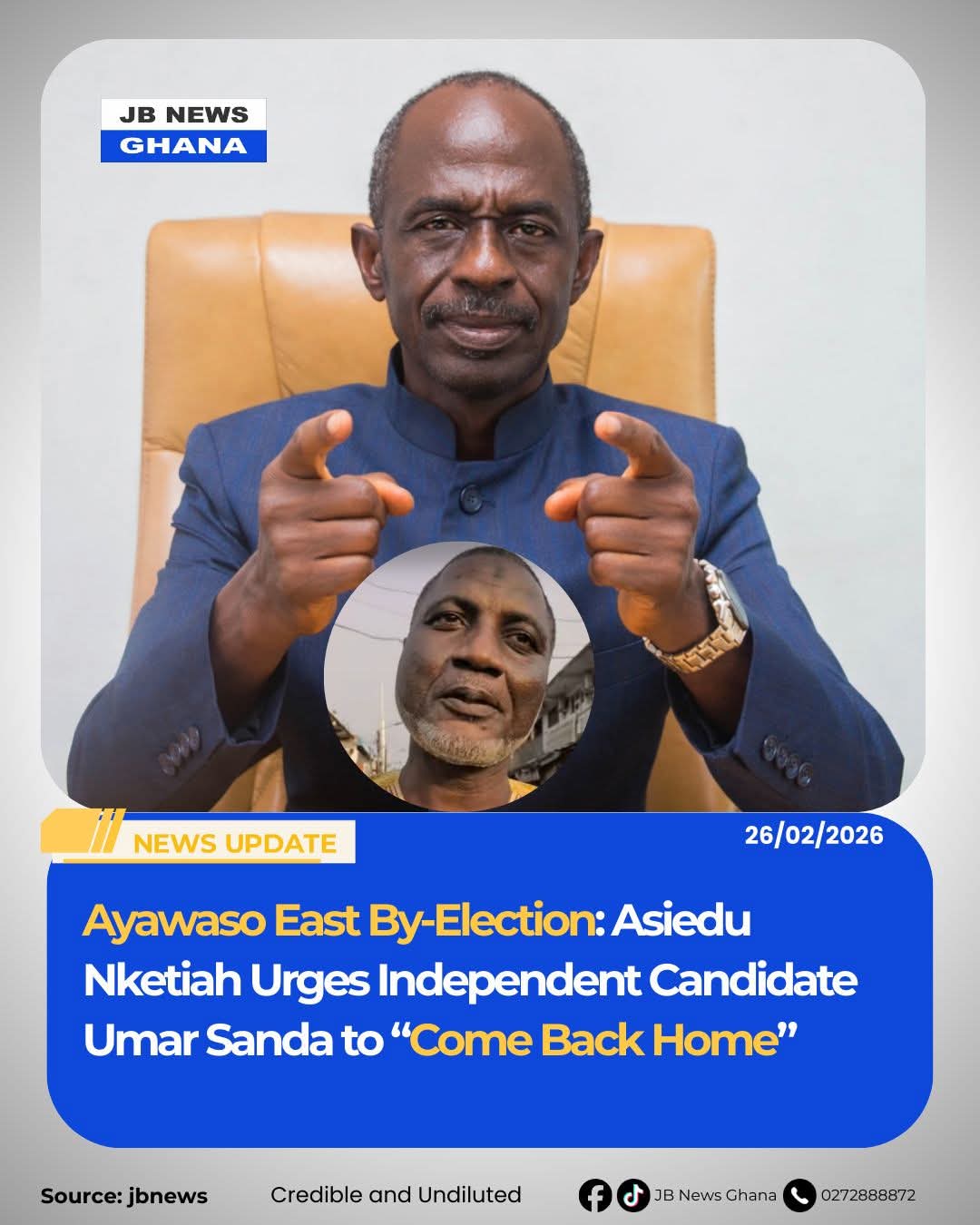 The National Chairman of the governing National Democratic Congress (NDC), Mr. Johnson Asiedu Nketiah, has made a passionate appeal to Mr. Umar Sanda, an independent parliamentary candidate in the upcoming Ayawaso East by-election, to reconsider his decision to contest.