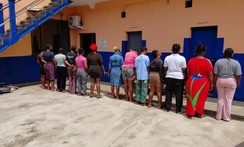 The Ghana Police Service has arrested 13 suspected prostitutes, a landlord, and a bouncer in Koforidua over alleged human trafficking, assault, and operating a brothel.