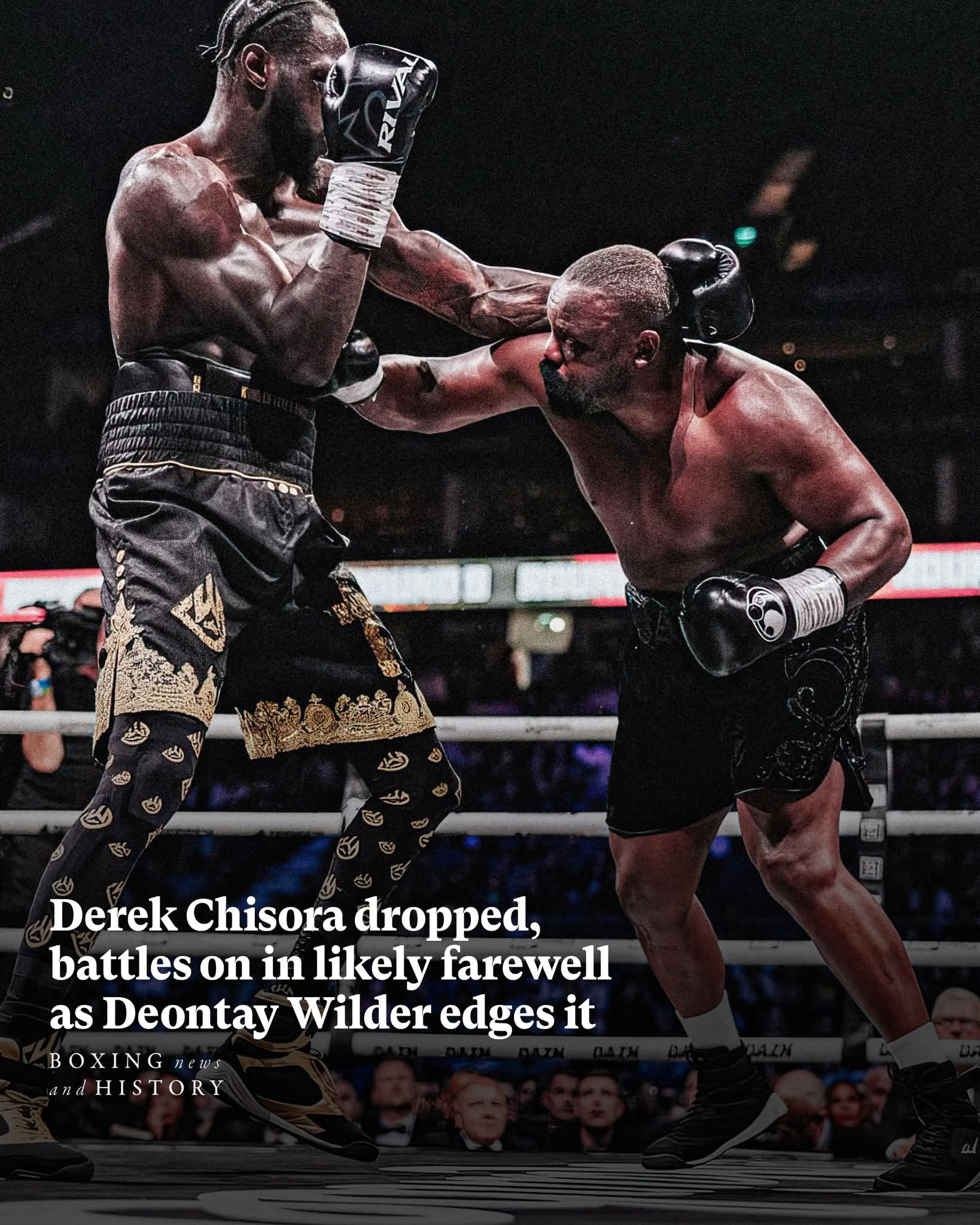 “I had an adorable opponent. I knew Derek was going to bring everything he had,” Wilder said. “In the ring I saw his temple start to swell. I said, ‘You’ve got to live for your kids.’ Too many lives have been lost in this ring. Nobody gives a damn about us. Us fighters have to look out for each other.